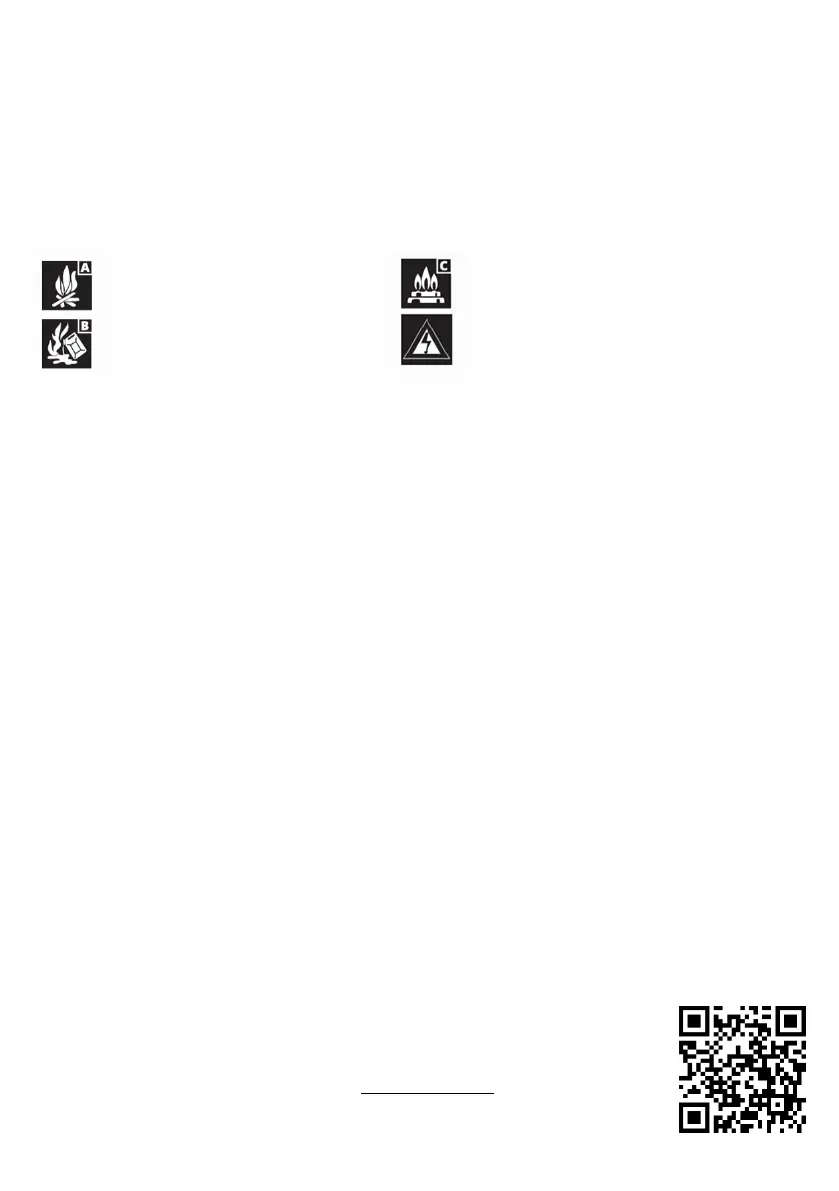 Extinguishing agent may be used for the following classes of fire (European Classification):