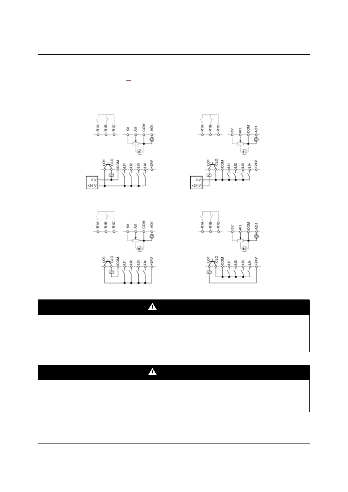 • The accidental grounding of logic inputs configured for Sink Logic can result in unintended activation of drive functions.