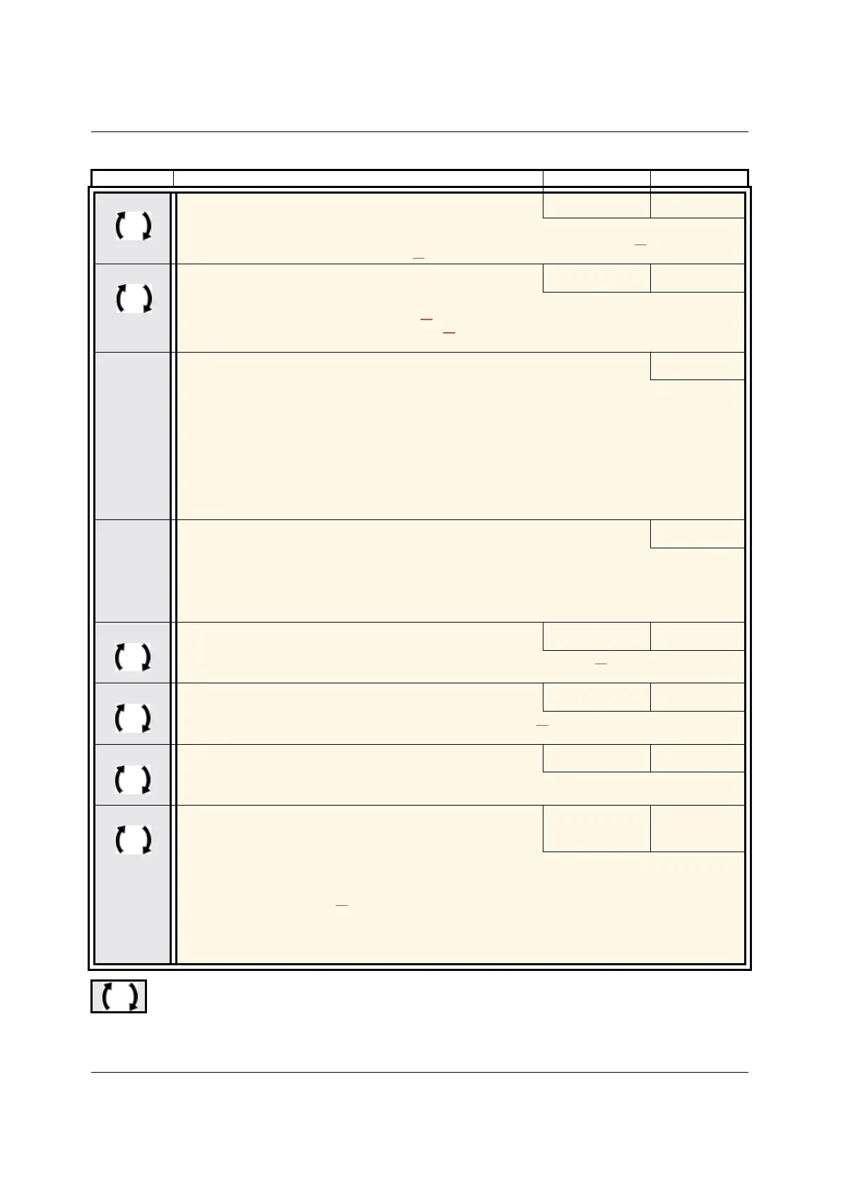 Code Name/Description Adjustment range Factory setting