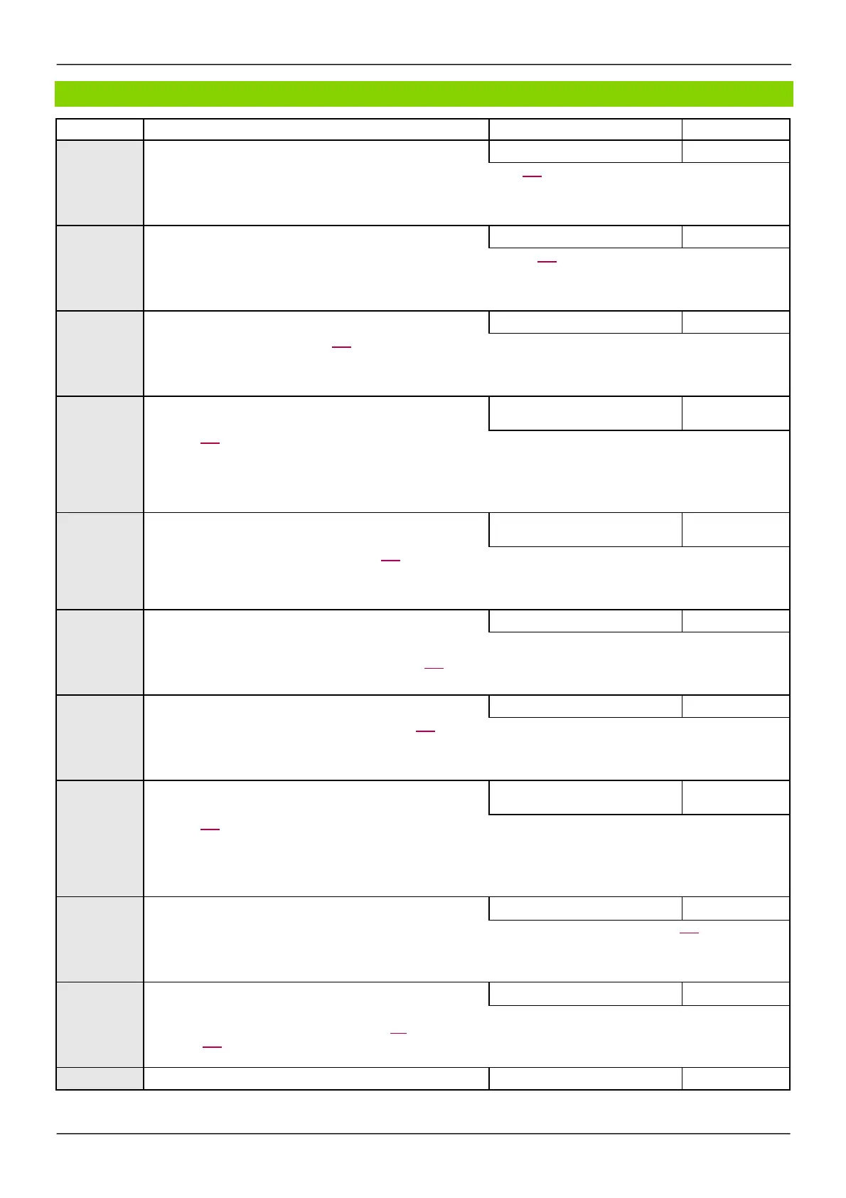 Code Nam e / De s cription Adjustment range Factory setting