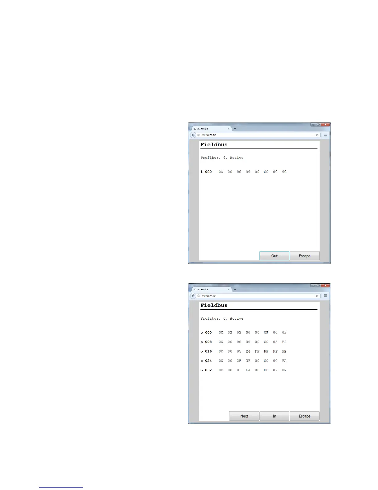instrument fieldbus address and the