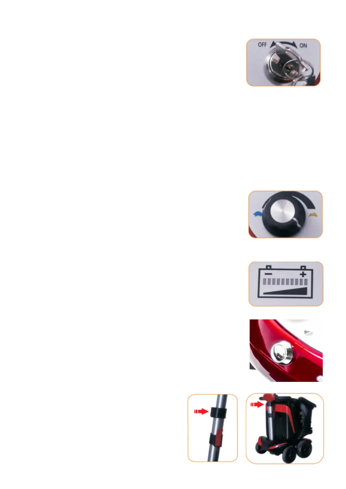 We also recommend that you remove the key from the ignition switch when the scooter is par-