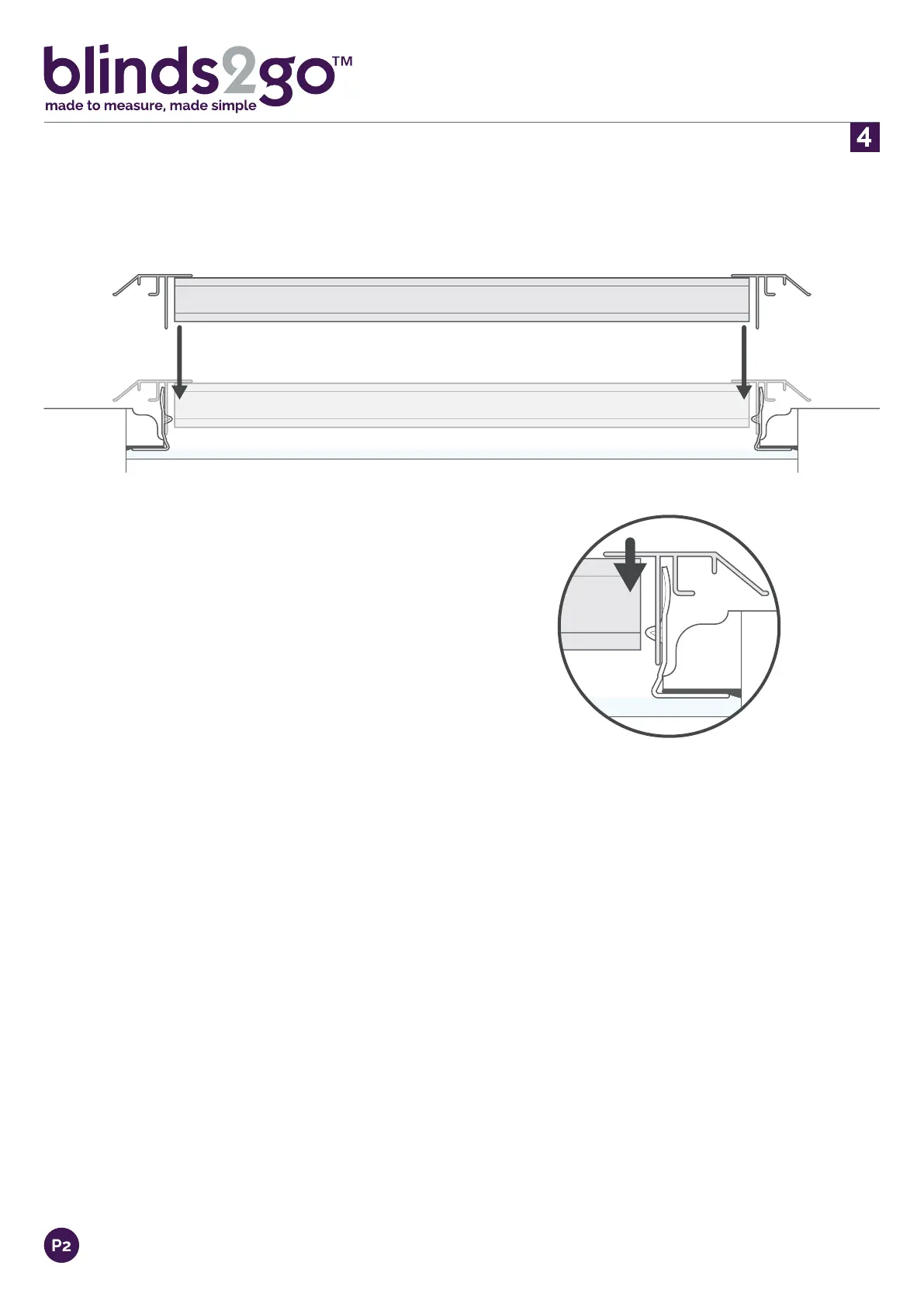 Line the assembled blind up with the brackets so that the centre prong of the bracket is aligned with the oval slot on the frame.