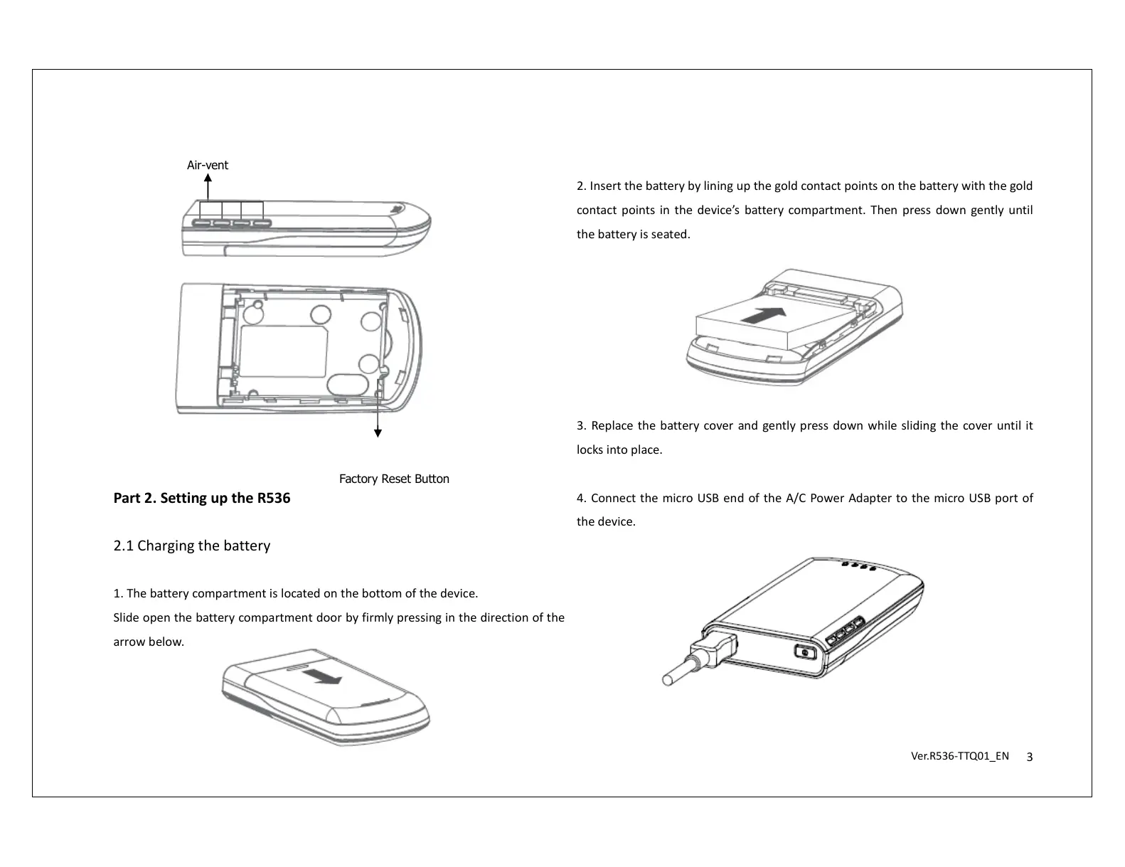 2. Insert the battery by lining up the gold contact points on the battery with the gold
