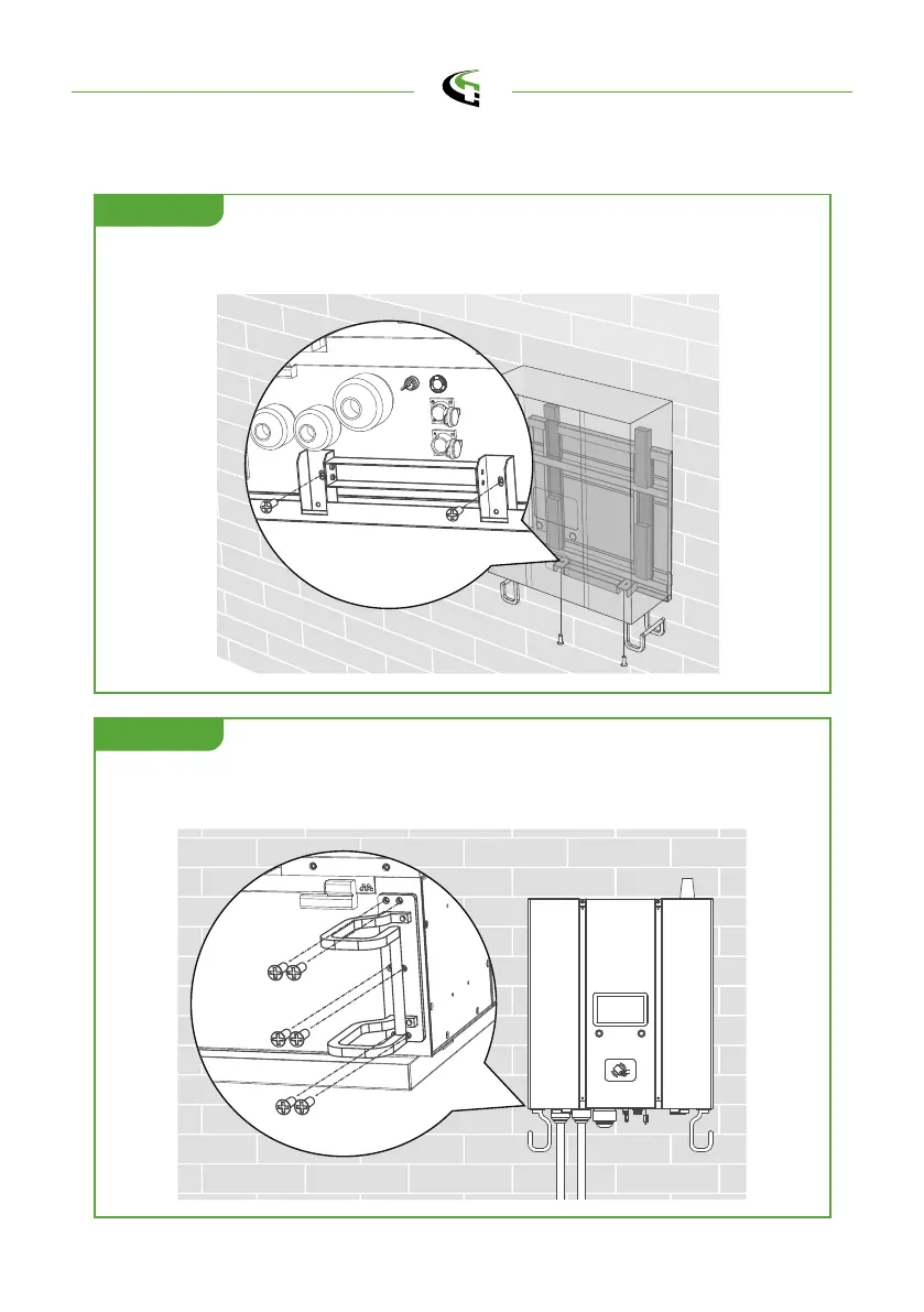 Screw 2 sets M6 screws to the bottom of the charger to fix the charger on the