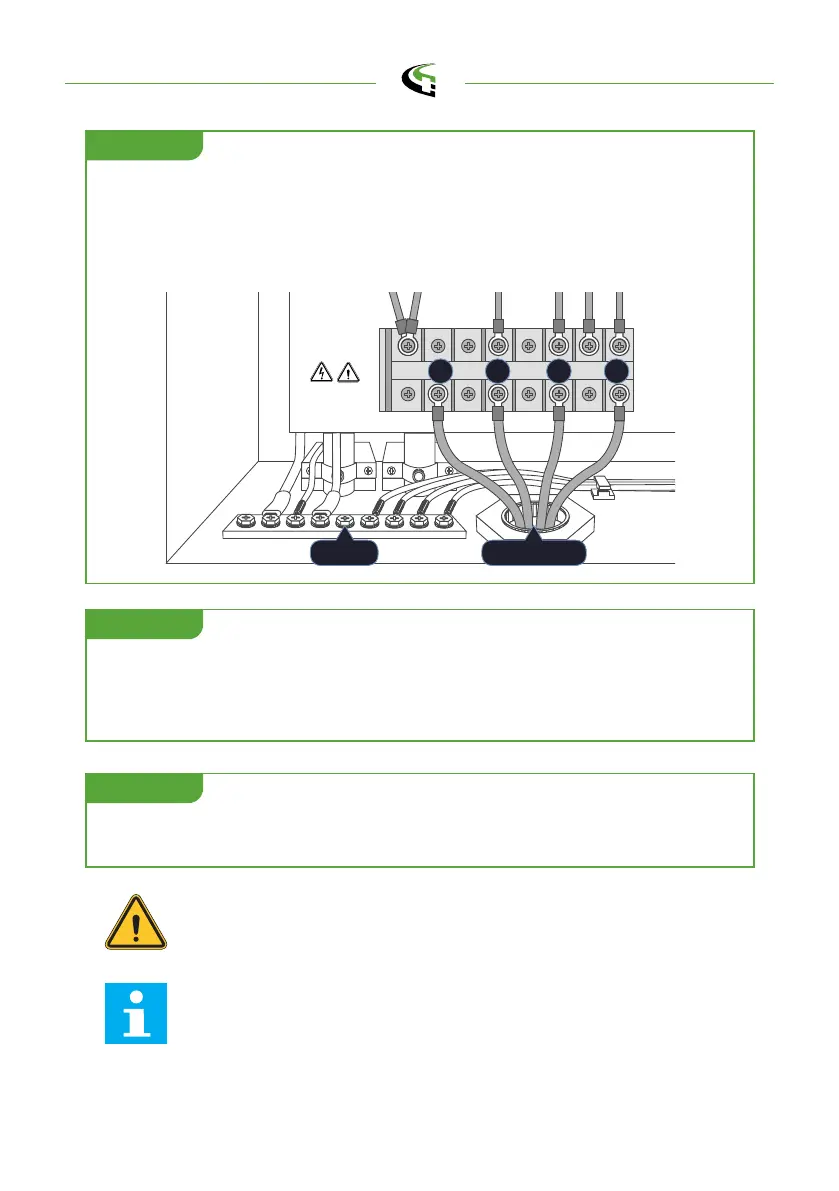 Fasten L1, L2, L3 and N wires onto the 4P terminal with M6 screws, torque