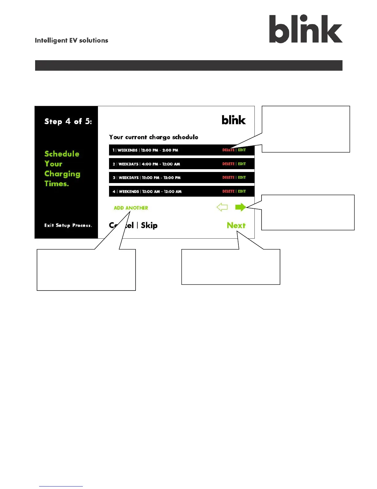 charge schedule, touch Next