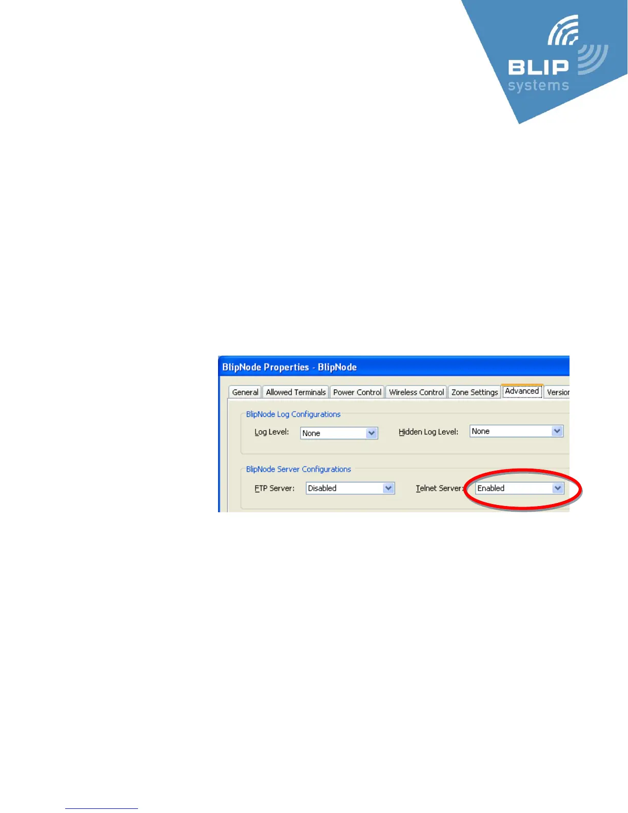 Remember to disable the telnet server (via BlipManager) after the changes are completed.