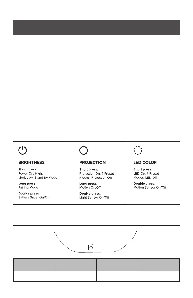 to cycle through default projection/swirl eects. Short press the last button to cycle