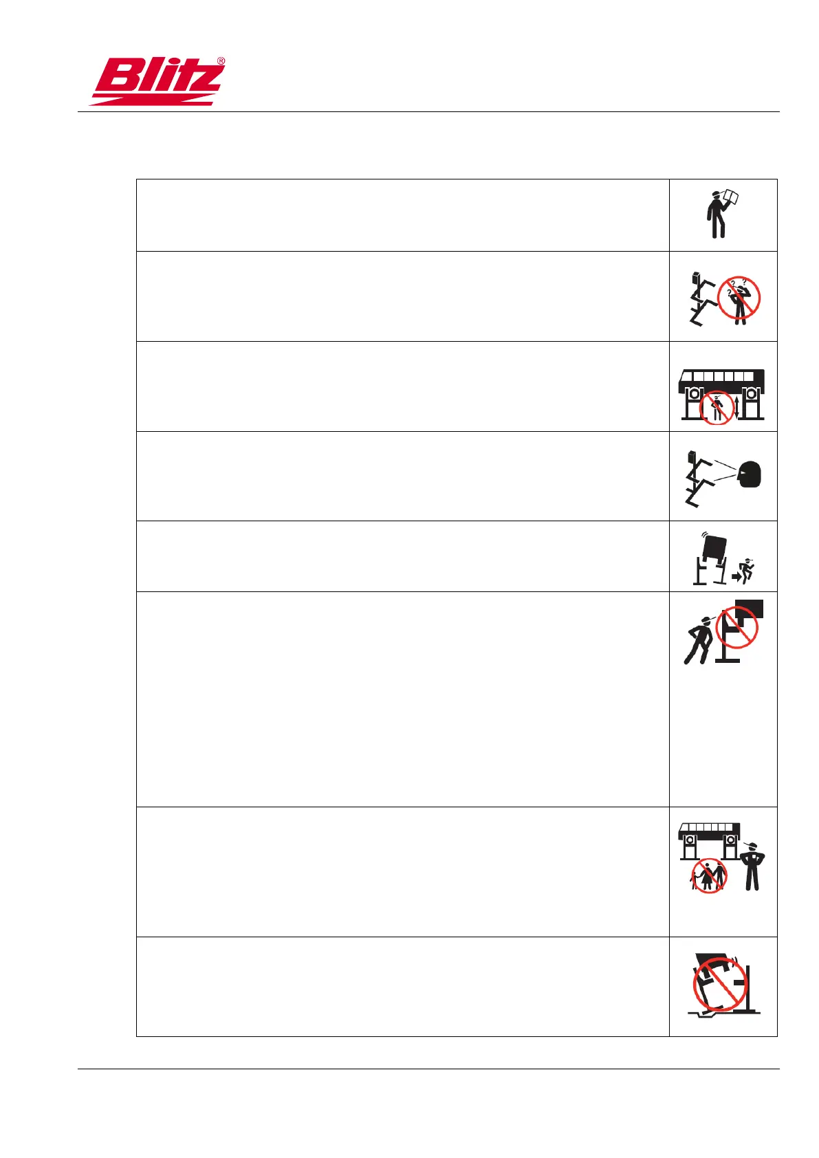◼ Il est interdit de lever des personnes et de grimper sur le système de levage