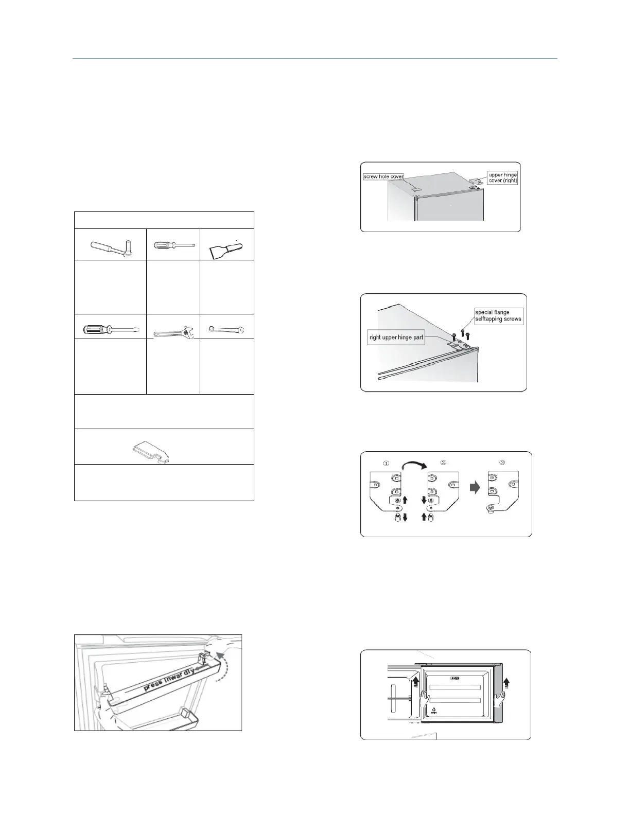 5.Remove the upper door from the middle hinge by