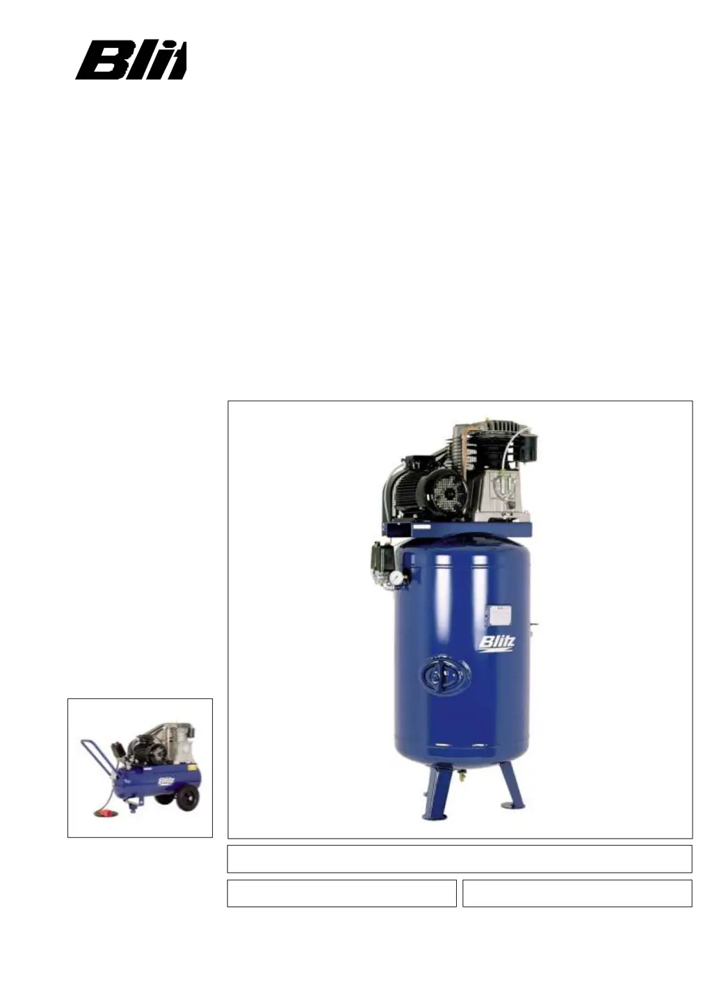 If your Blitz Air Compressor isn't starting, first ensure it's properly connected to the mains. Next, check the electric cable, switching units, and motor for blown fuses, replacing them with time-lag fuses if necessary. Also, verify that the network pressure isn't exceeding the cut-in pressure; reduce it if it is. If these steps don't resolve the issue, the pressure switch or the motor itself might be defective and require replacement. Finally, consult the table regarding the protective motor switch in case it has been triggered.