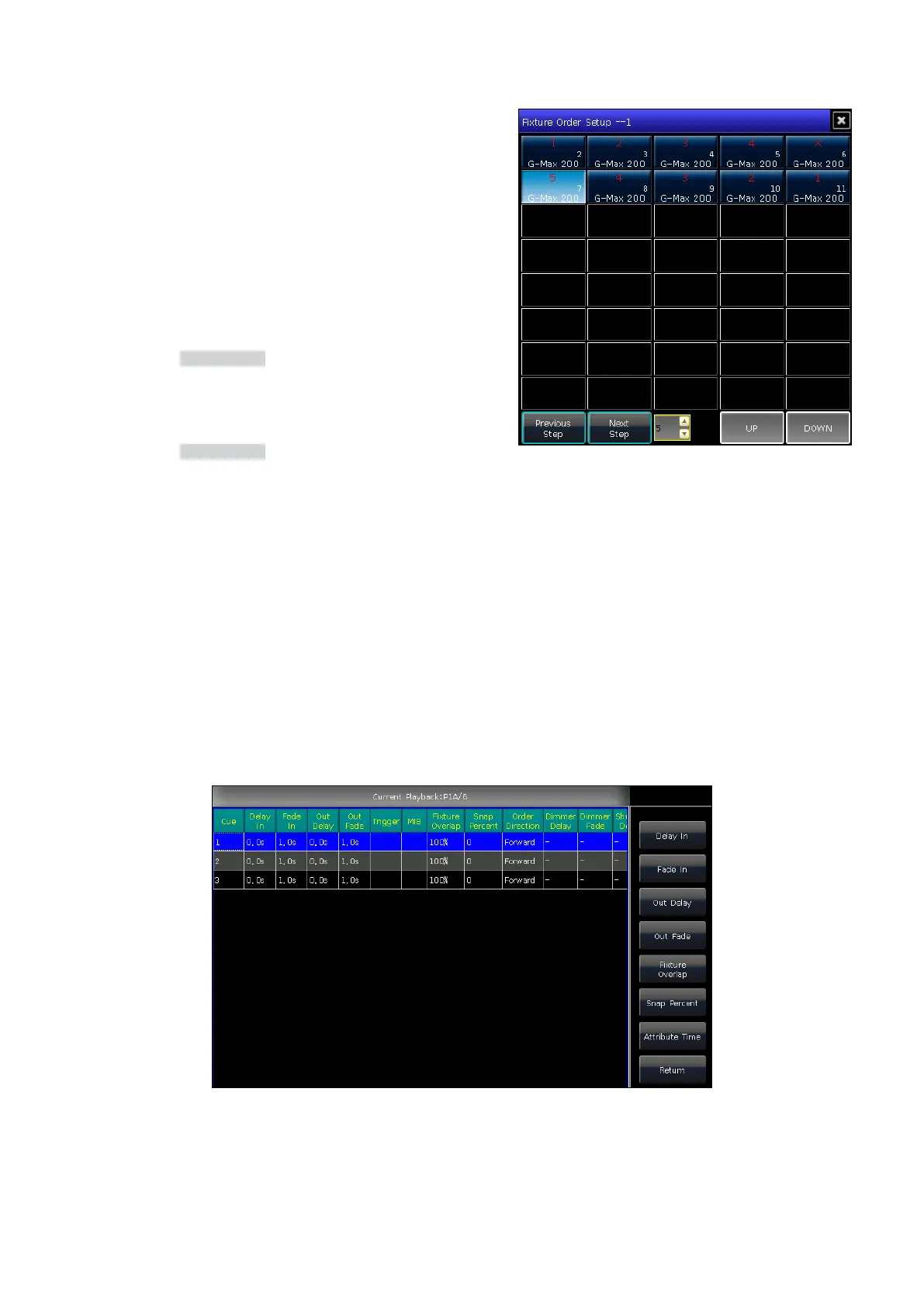 The playbacks oer individual attribute times and snap percentage settings. You can also set the xture order and xture