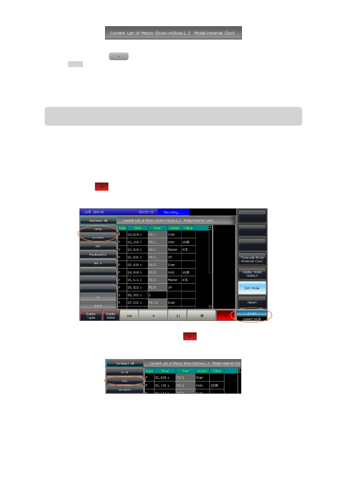 7. You can press the soft key on the record window when needing to run the macro show. You can also