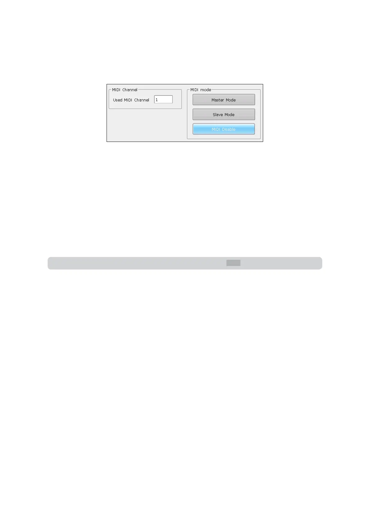 2. MIDI Mode: The controller can be set in [Master Mode], [Slave Mode], or [MIDI Disable]. The default option on the