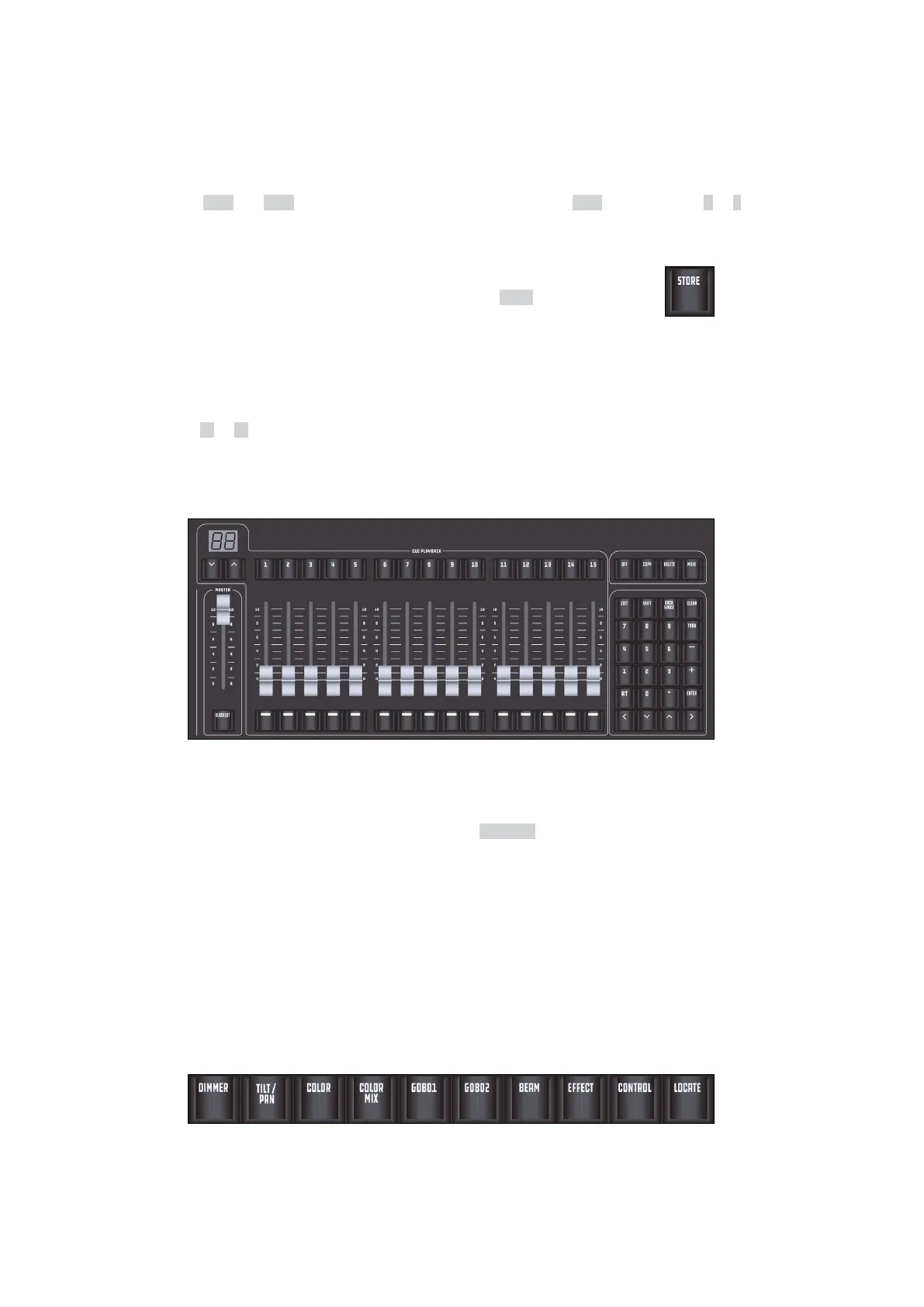 Keys above and below each playback fader will be introduced in later relevant chapters.