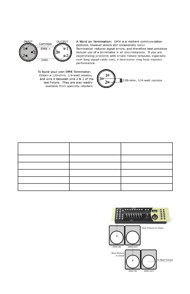 DMX cable to the rst xture’s male connector