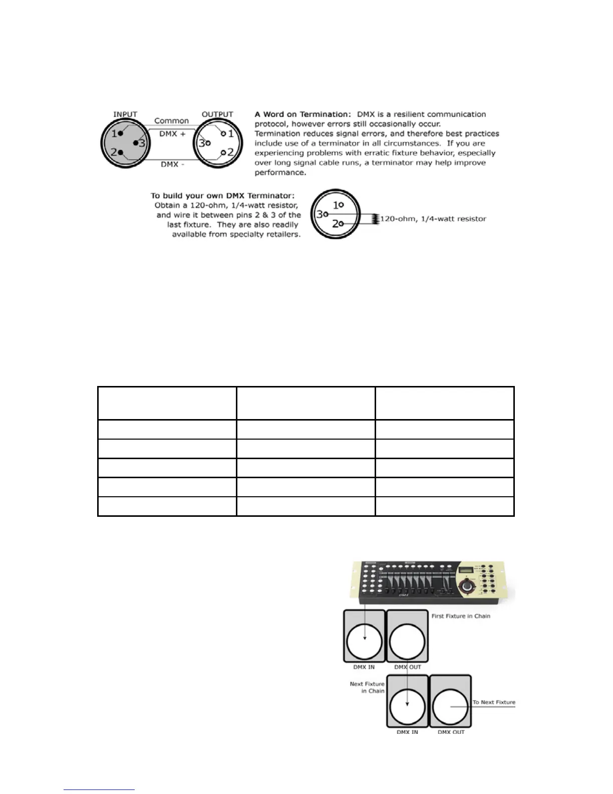 DMX cable to the rst xture’s male connector