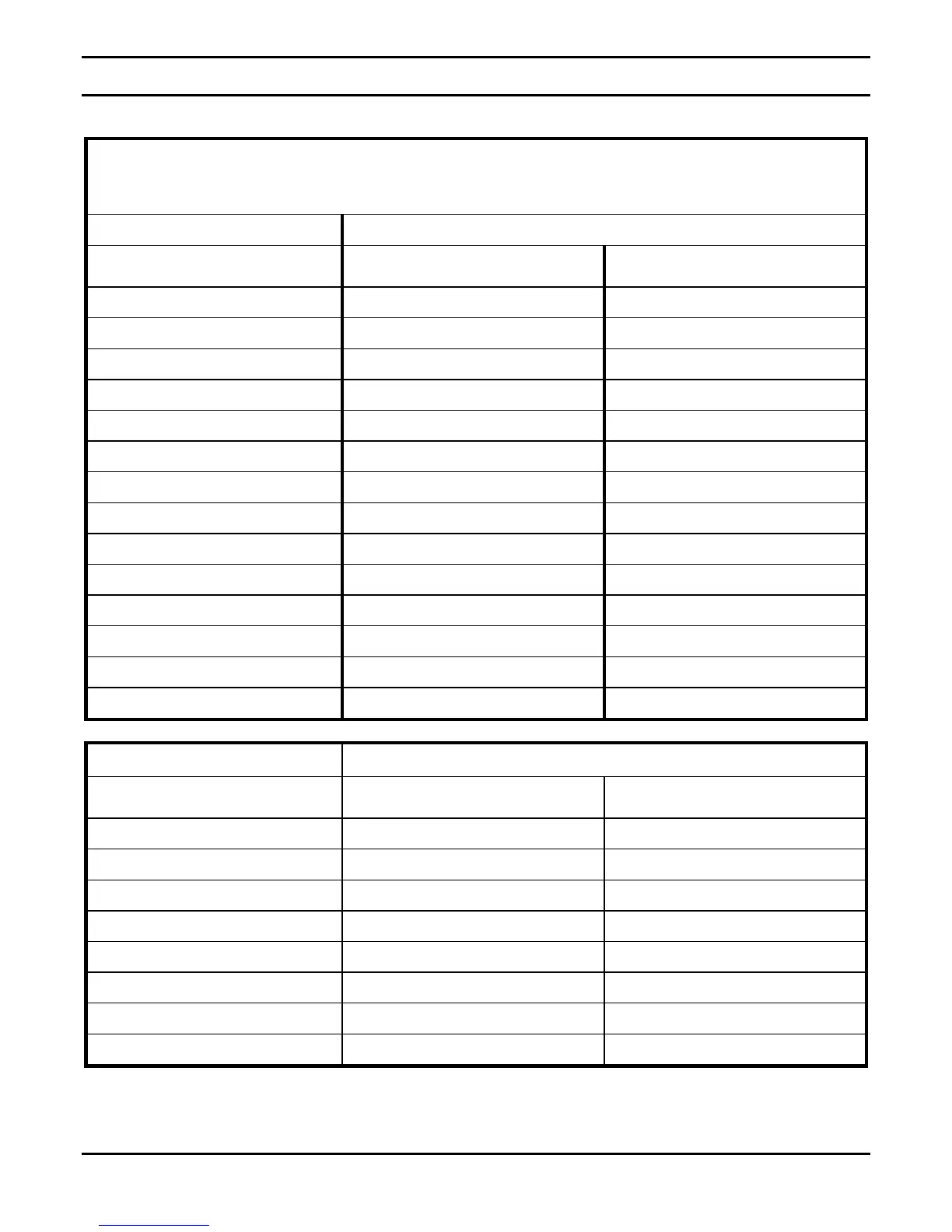 GENERAL SPECIFICATION TABLE