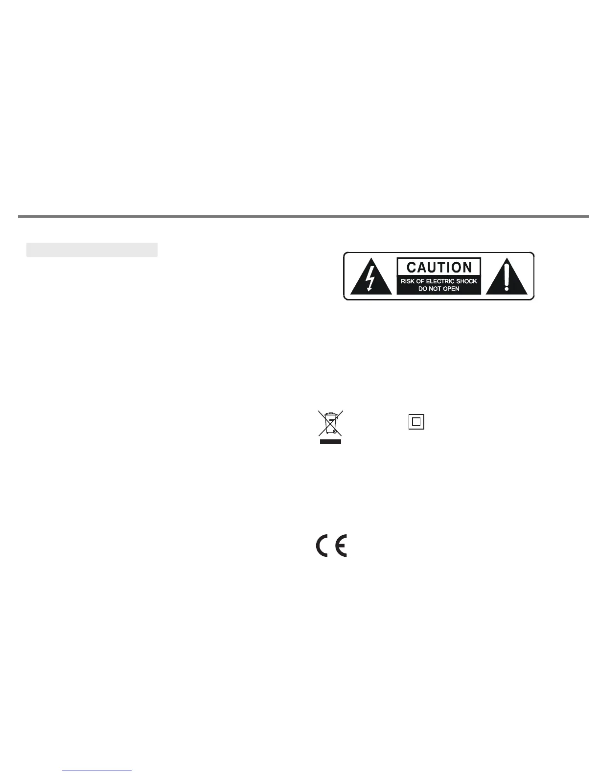 CAUTION: To reduce the risk of electric shock, do not remove any