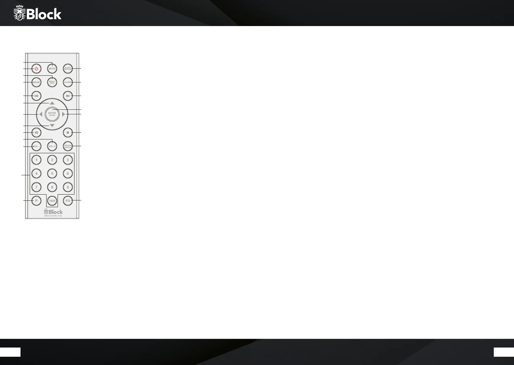 19. T„P“ button: recalls or saves pre-set transmitters in radio mode.