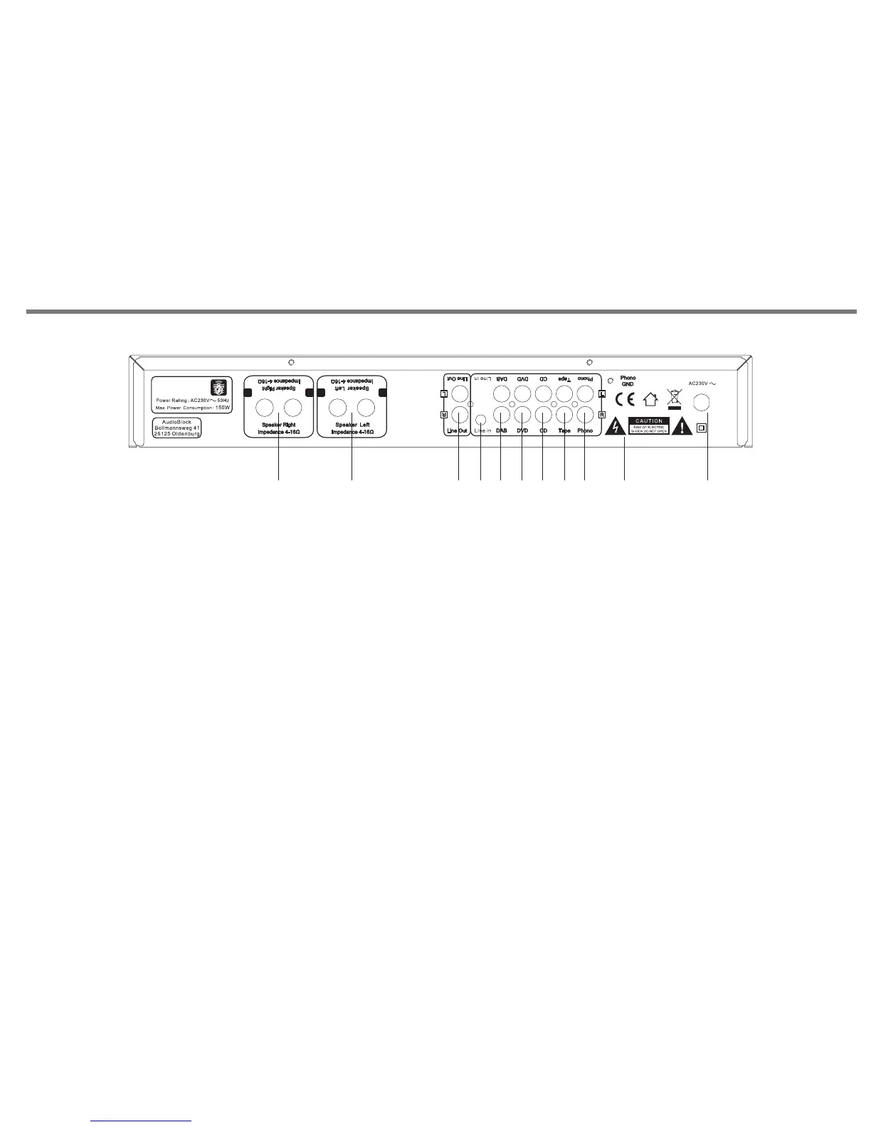 9. PHONO INPUT SOCKET. For the connection of a turntable.