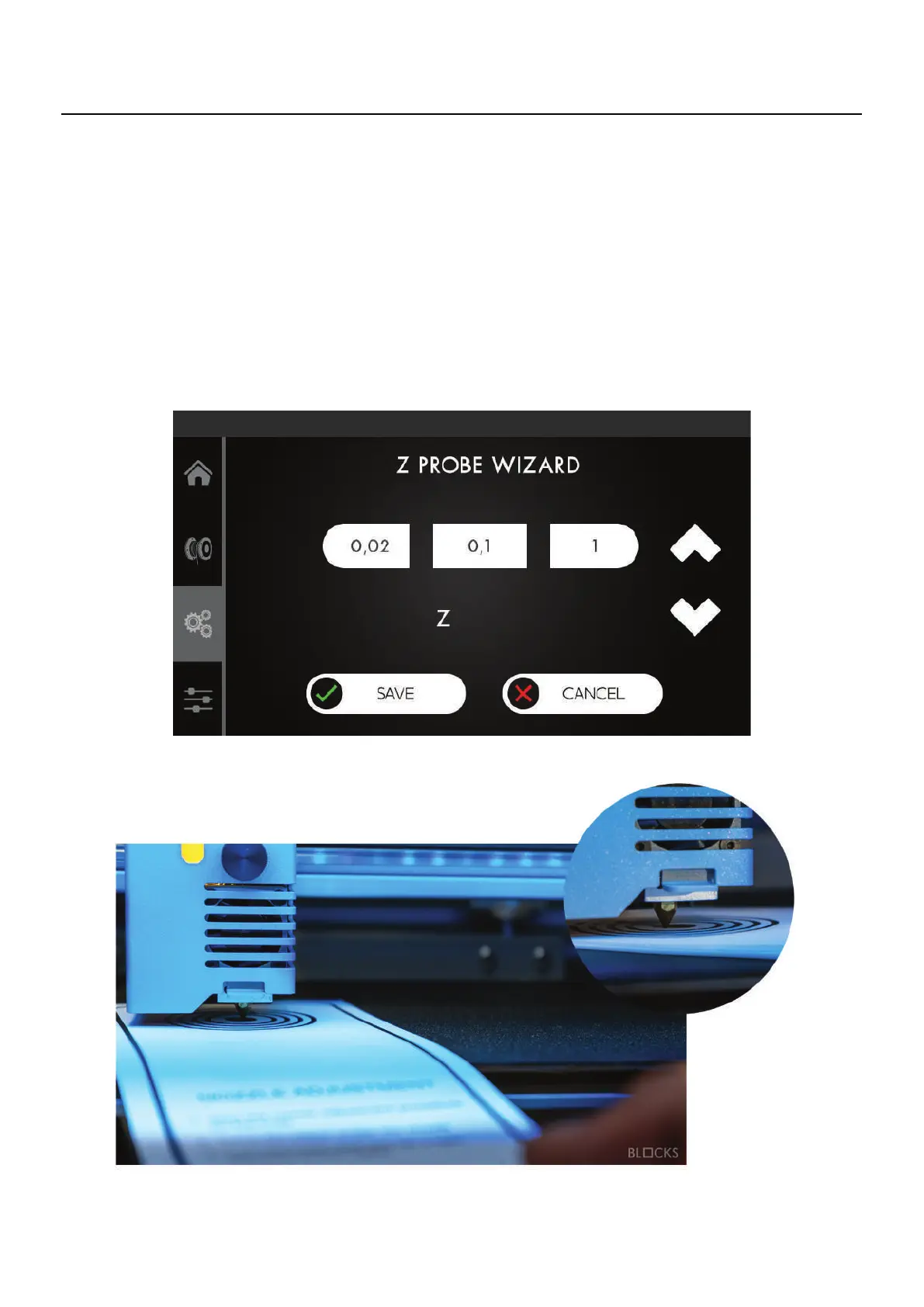 baixo, ajuste a distância do Prato ao Nozzle até sentir uma leve pressão no papel.