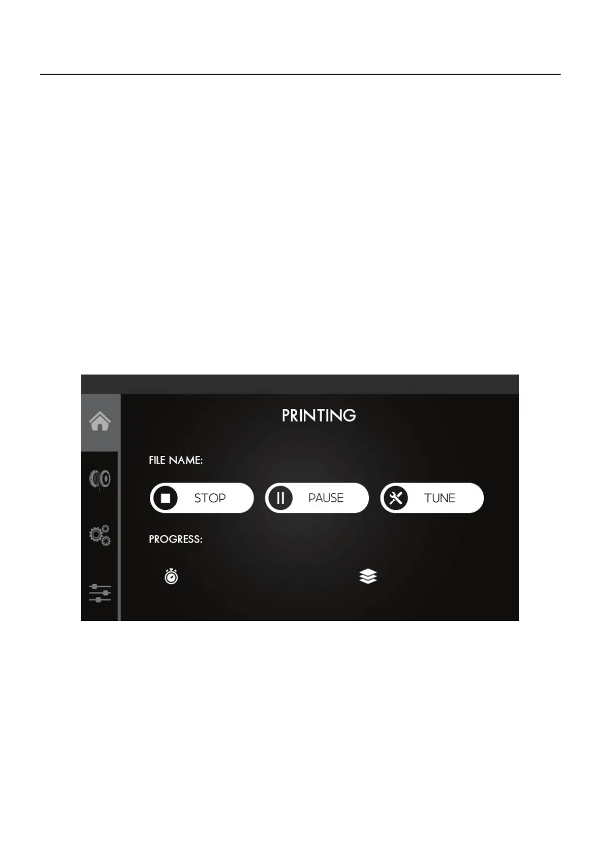 tempo restante de impressão, camada atual, temperaturas da cama e do Nozzle e