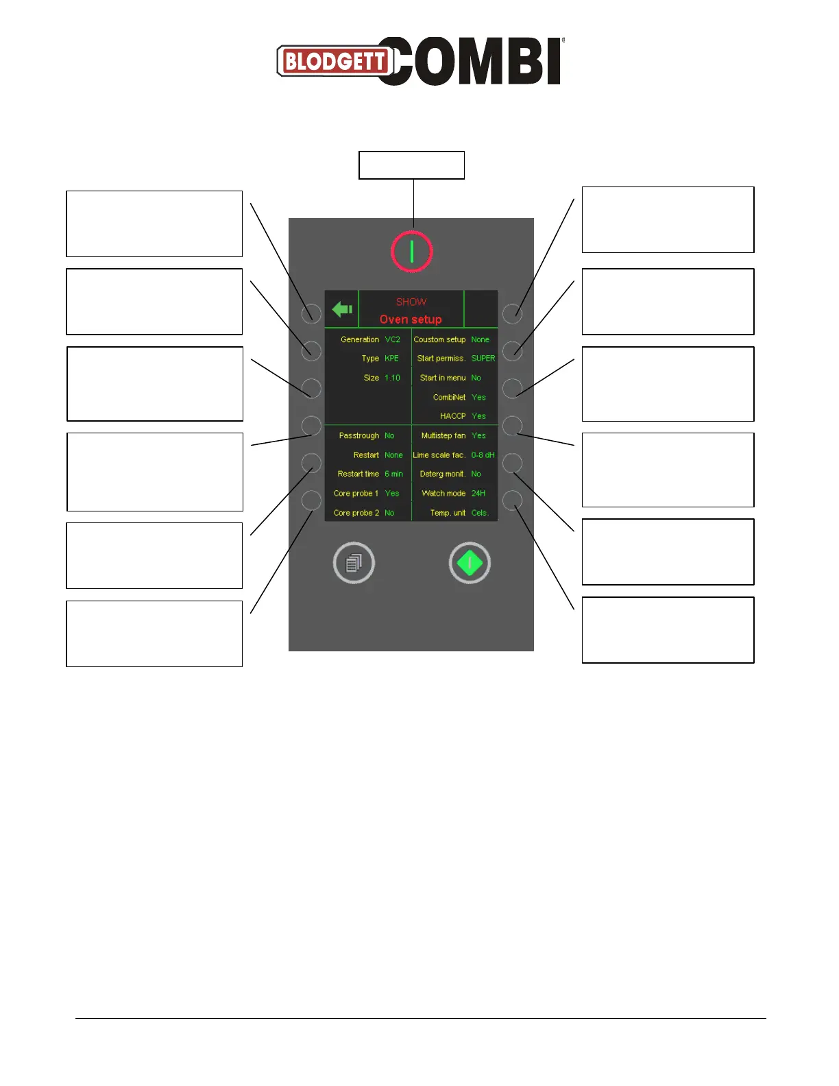 This menu shows the features incorporated in this particular oven. Changes not possible.