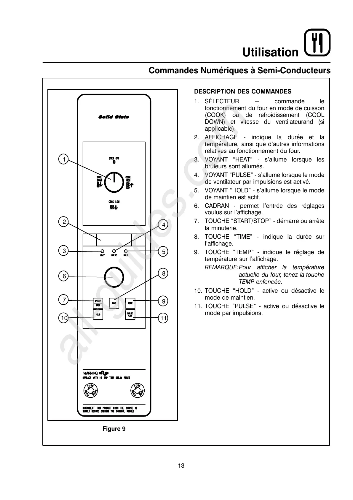 11. TOUCHE PULSE" Ć active ou désactive le