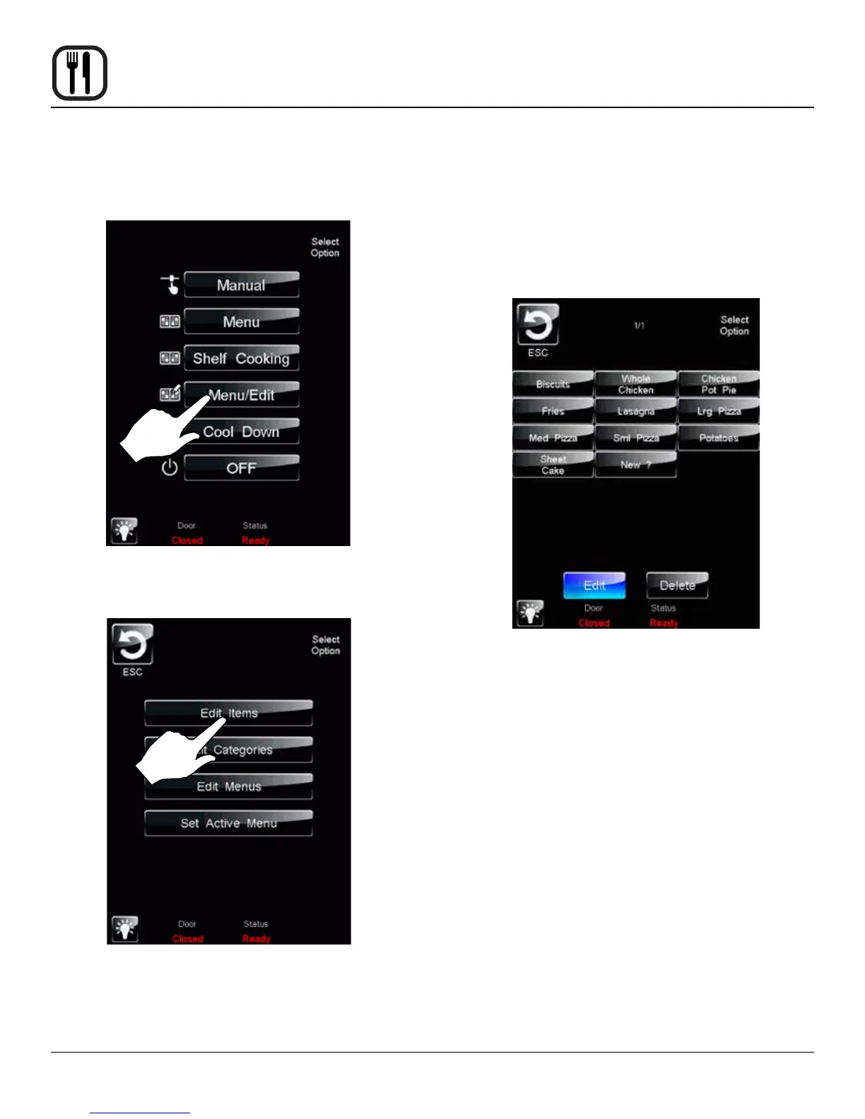 1. Select the MENU/EDIT icon to edit the recipes in the
