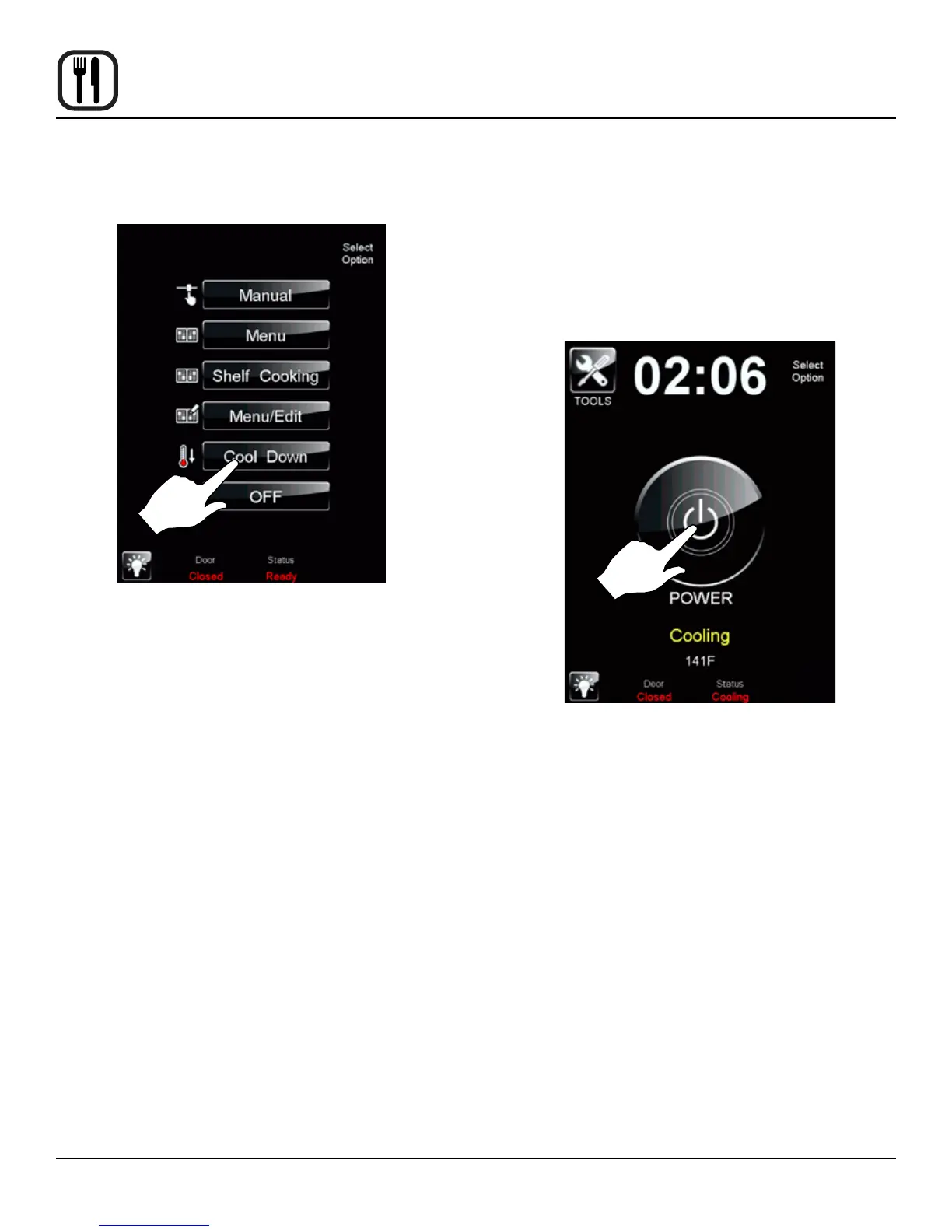 1. To cool down the unit, press the COOL DOWN icon.
