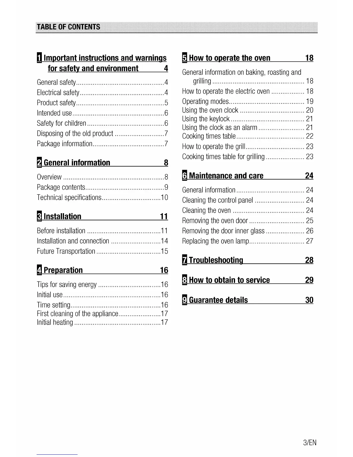 Blomberg BEO 9444 - Table of Contents