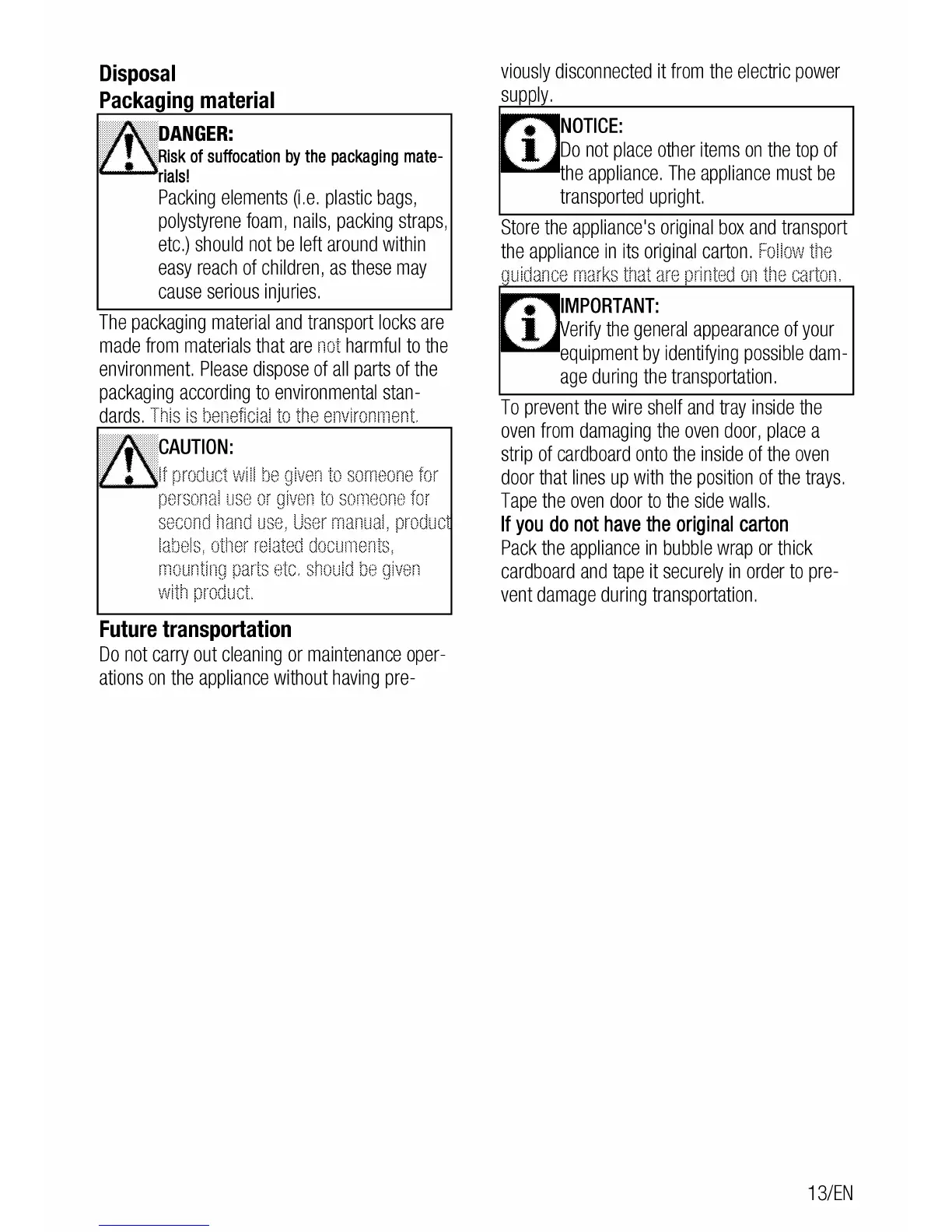 Blomberg BGR30420SS - Disposal; Packaging Material; Future Transportation