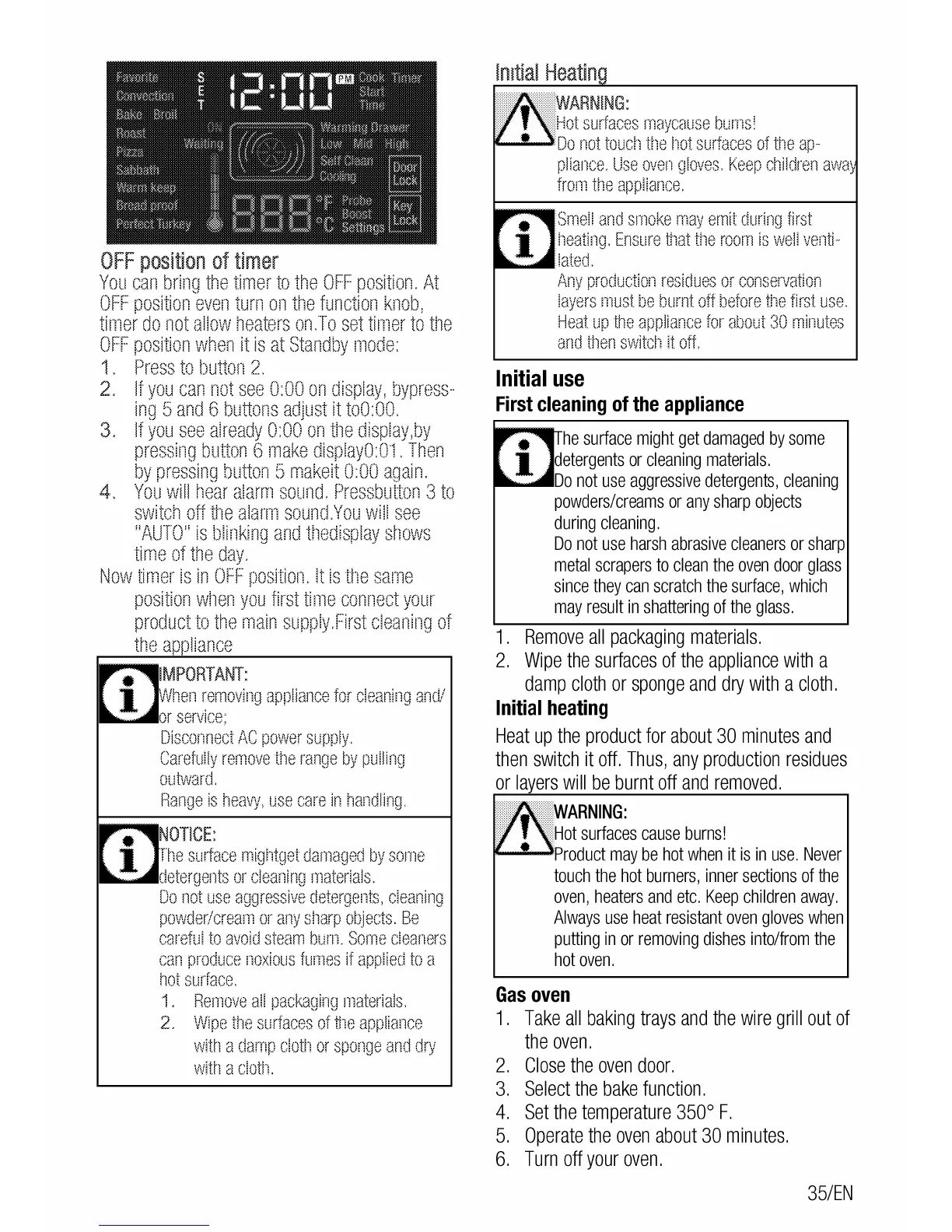 Blomberg BGR30420SS - Initial Heating; Initial Use; First Cleaning of the Appliance