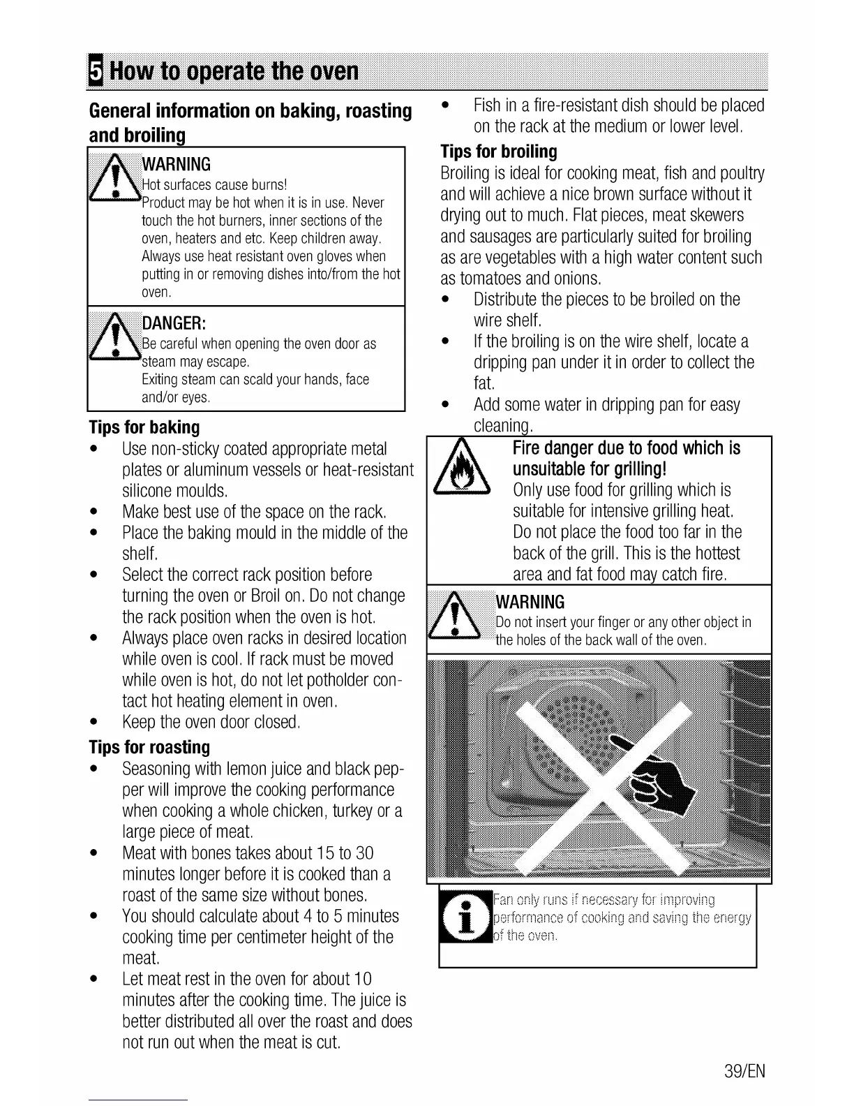 Blomberg BGR30420SS - How to Operate the Oven; General Information on Baking, Roasting and Broiling