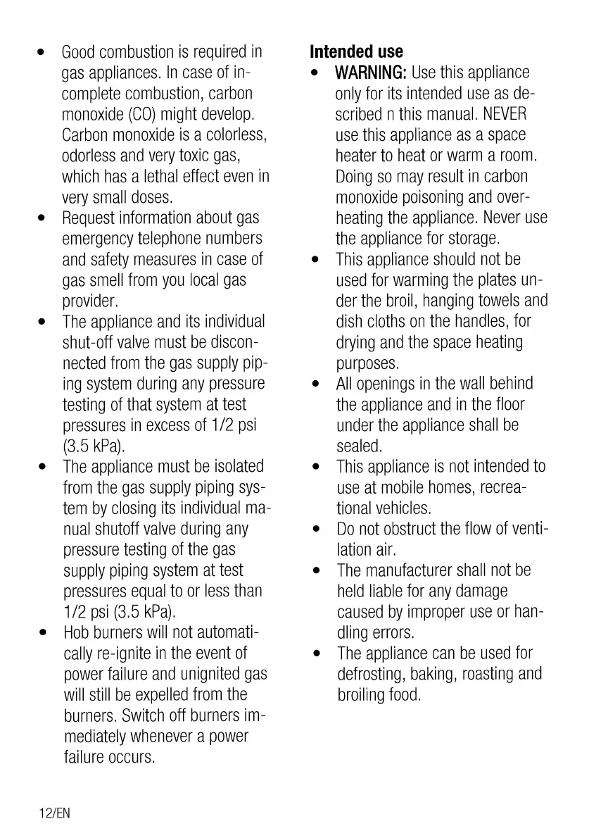 Blomberg BGRP34520CSS - Intended Use and Restrictions; Appliance Purpose and Prohibited Uses; Ventilation Requirements and Manufacturer Liability