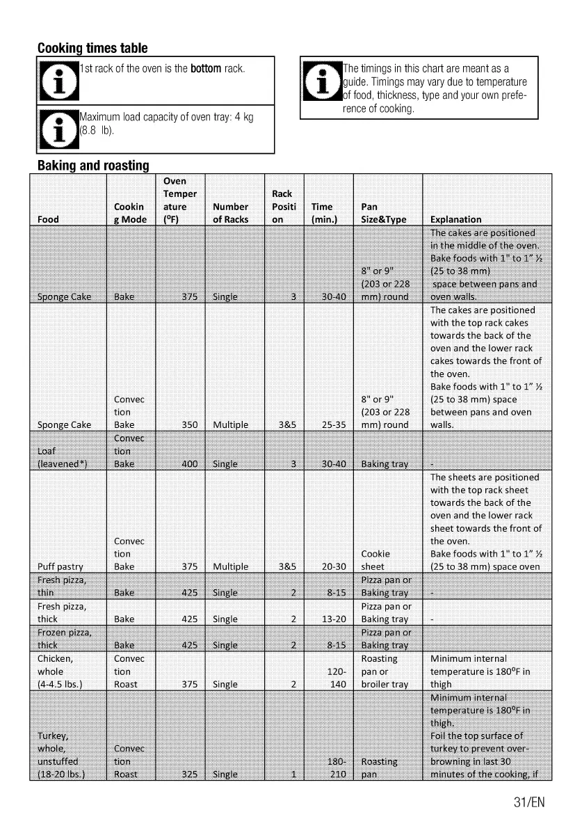 Blomberg BGRP34520CSS - Cooking Times Table; Baking and Roasting Cooking Guide