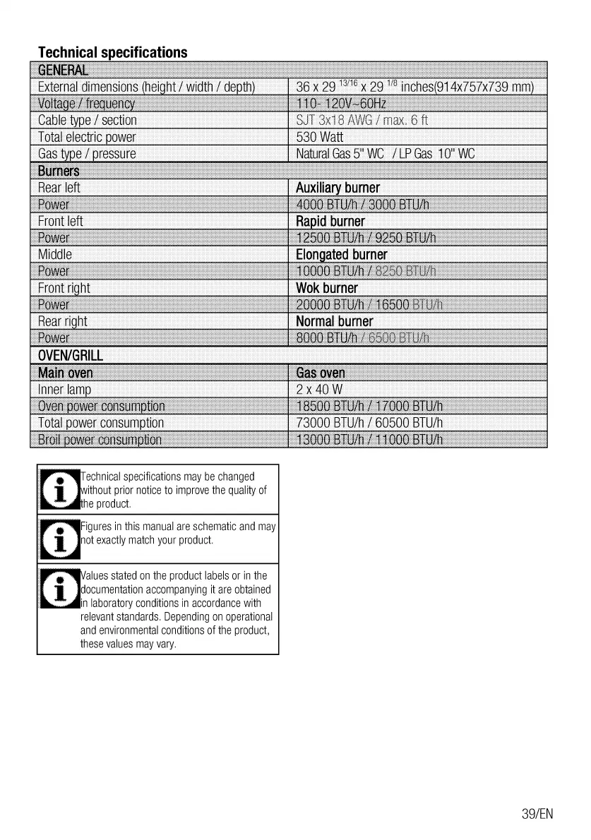 Blomberg BGRP34520CSS - Technical Specifications; Appliance Technical Details and Ratings