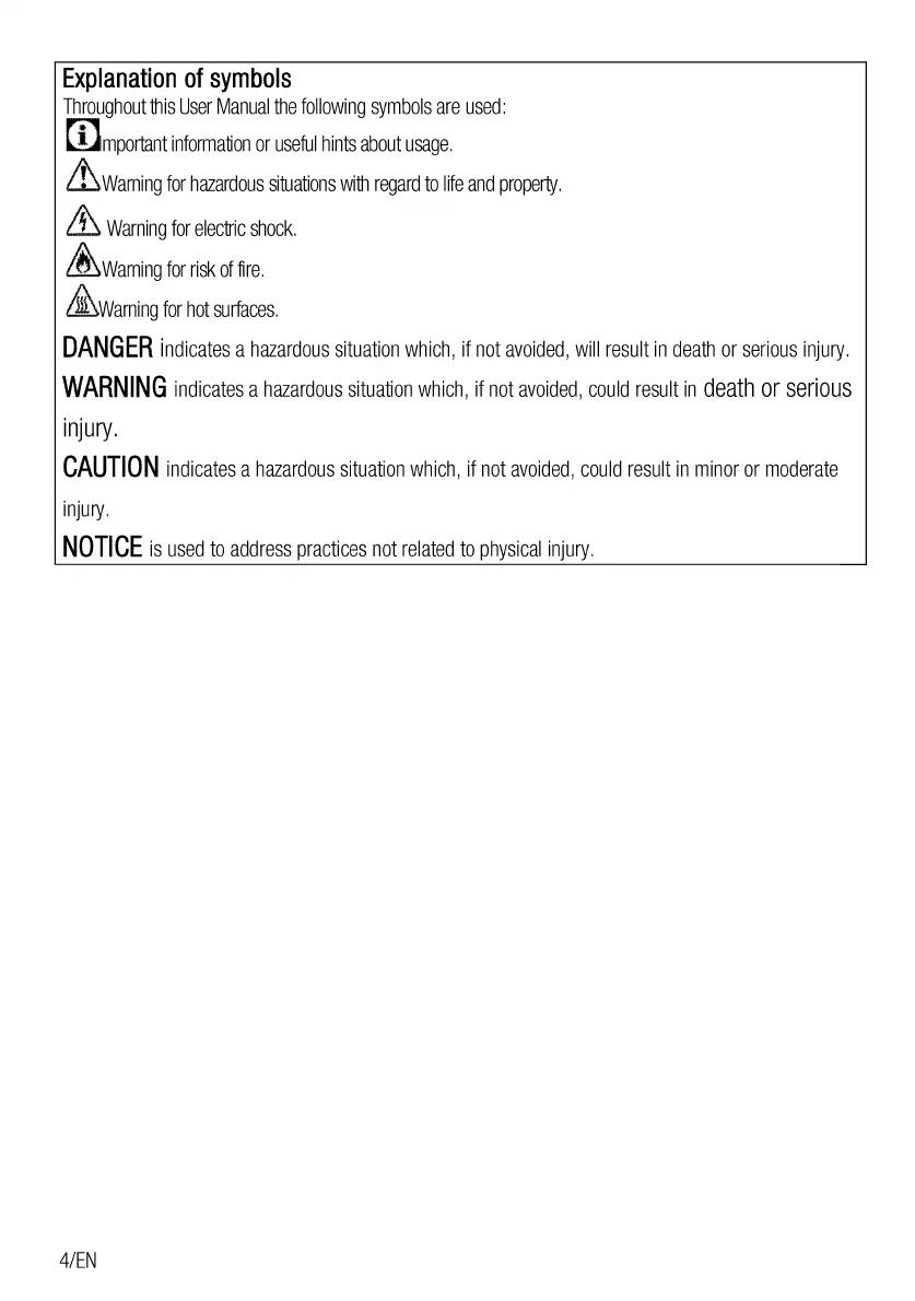 Blomberg BGRP34520CSS - Explanation of Symbols; Symbol Definitions and Usage Guide