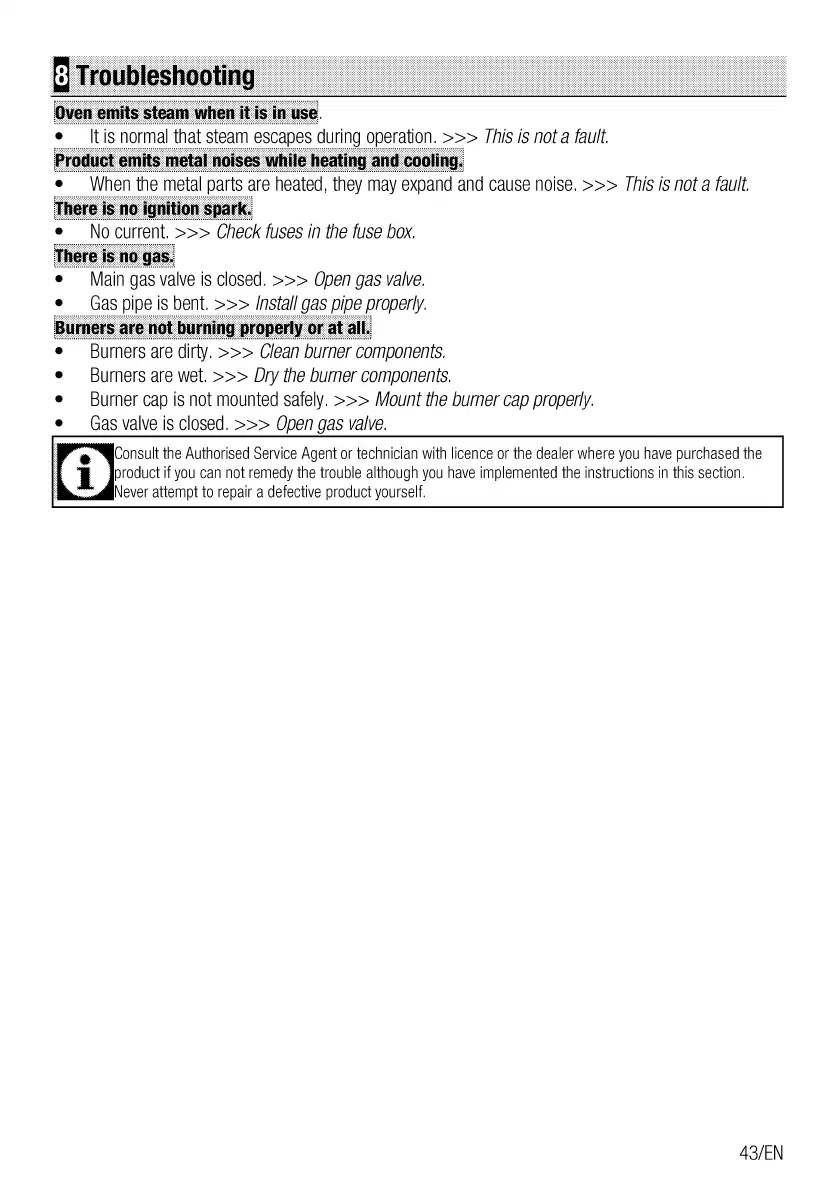 Blomberg BGRP34520CSS - 8 Troubleshooting Common Issues; Common Operational Issues and Solutions; Troubleshooting Gas Supply and Burner Problems