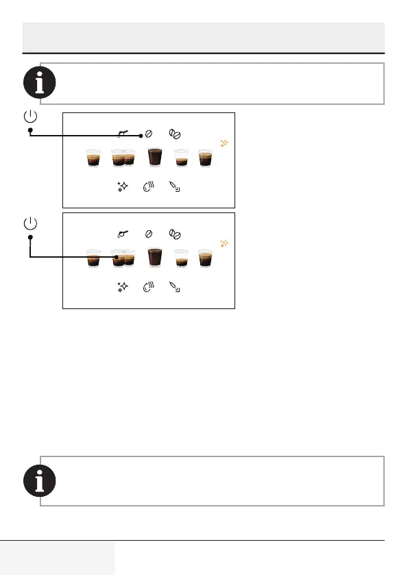 • Press power on/off button and beverage button (which is desired to be