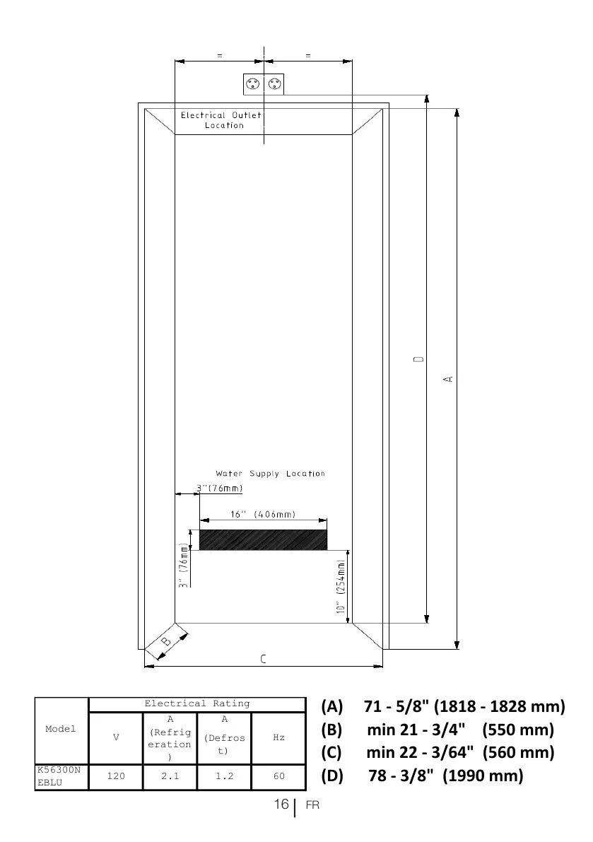 (B)min213/4"(550mm)