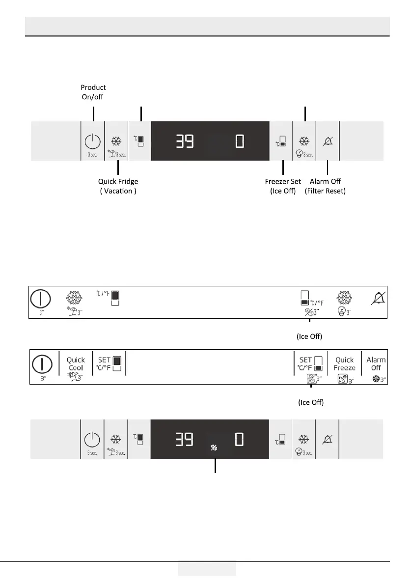 When the Freezer Set button is pressed for 3 seconds while the Ice-off icon is on, the Ice-off function is