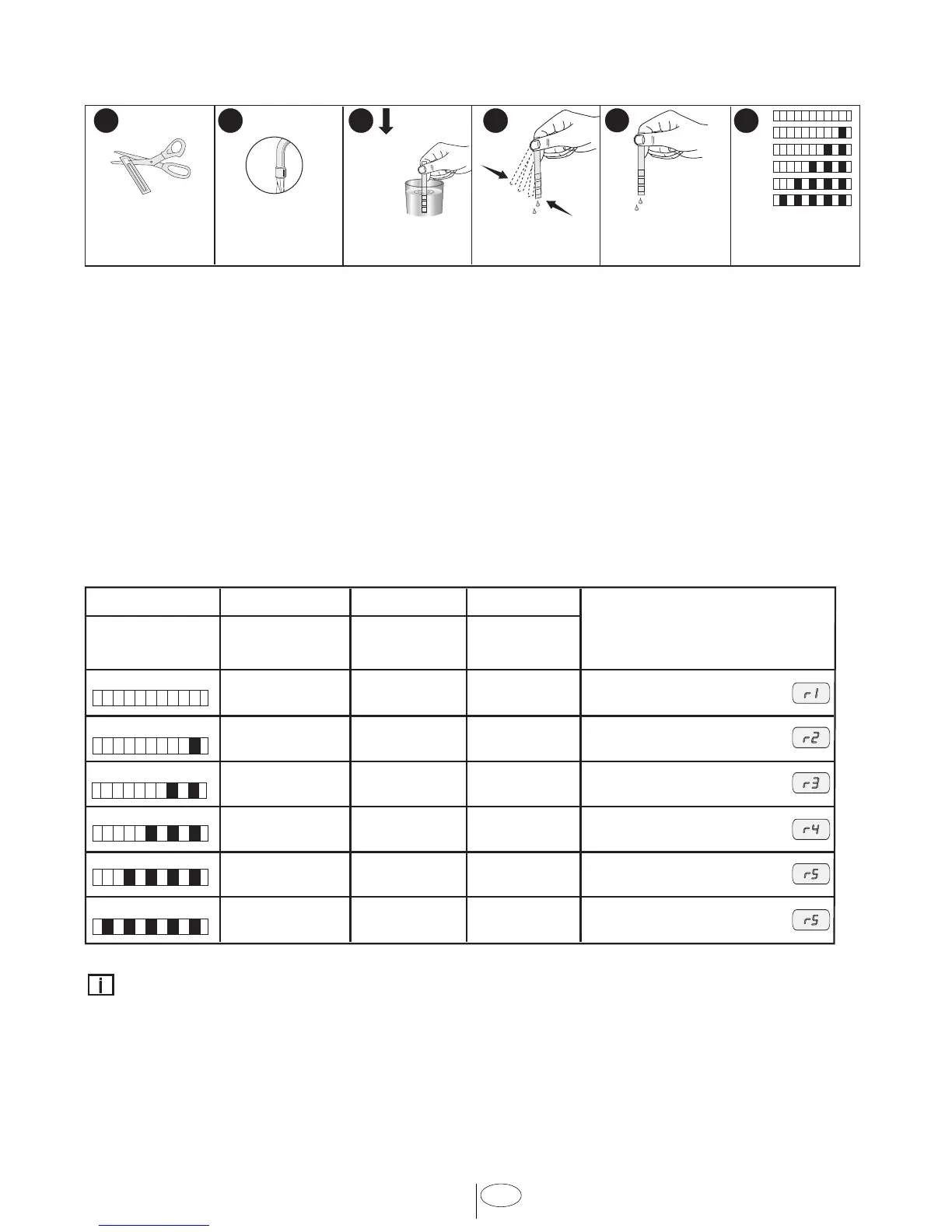 the test strip with the degrees of Hardness Table). The appropriate program follows up lights