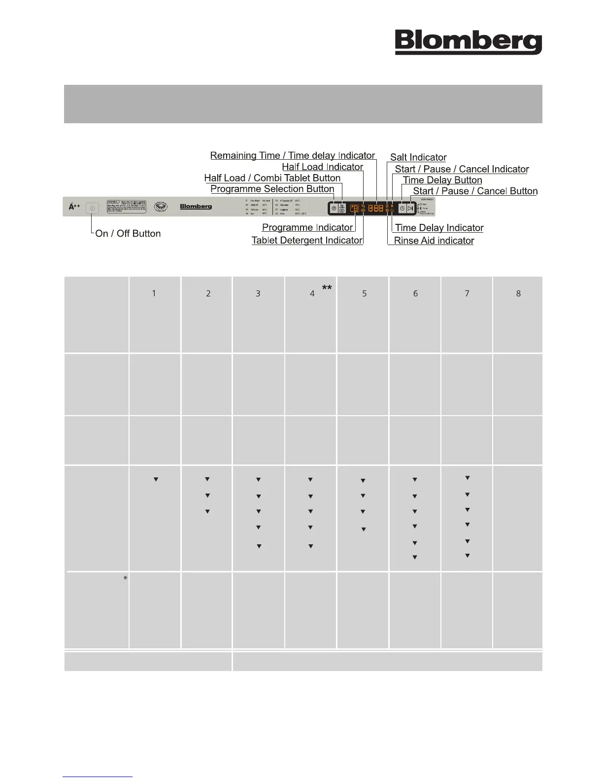 GVN 9483 E Programme Chart and Quick Reference Guide