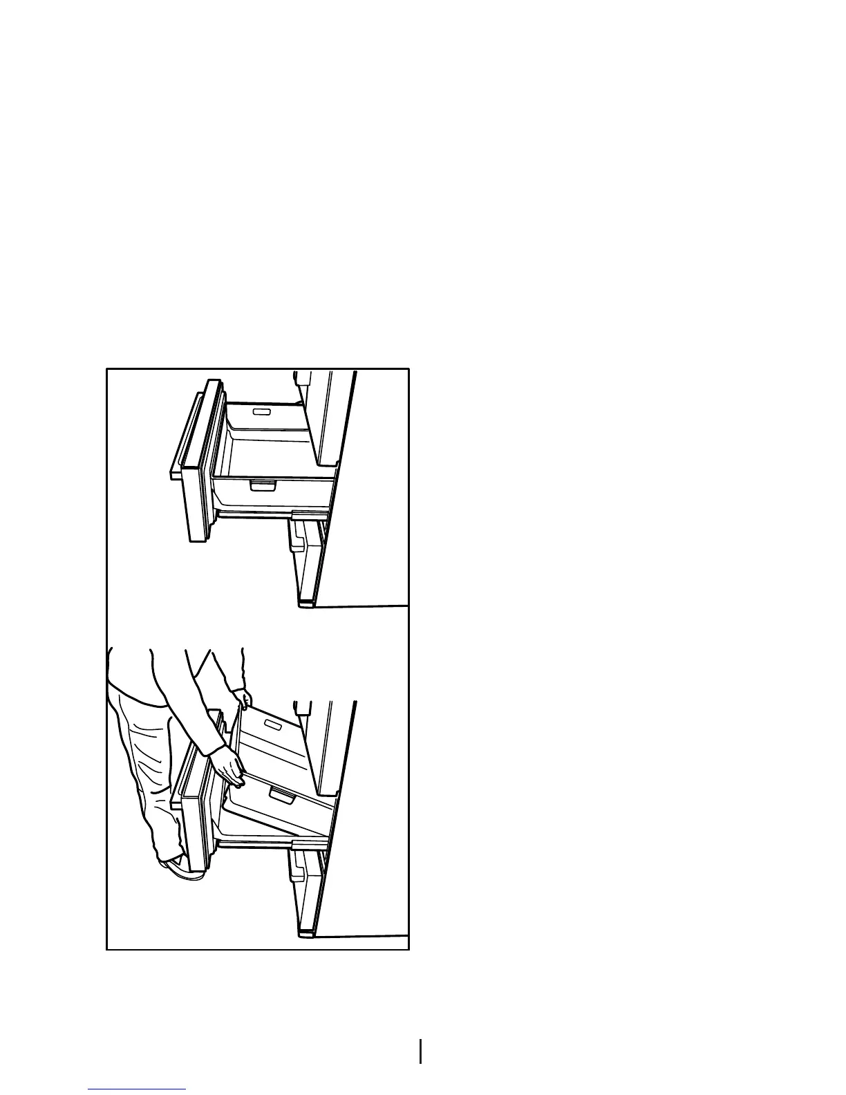 Du kan kun ta ut skuffene for rengjøring.
