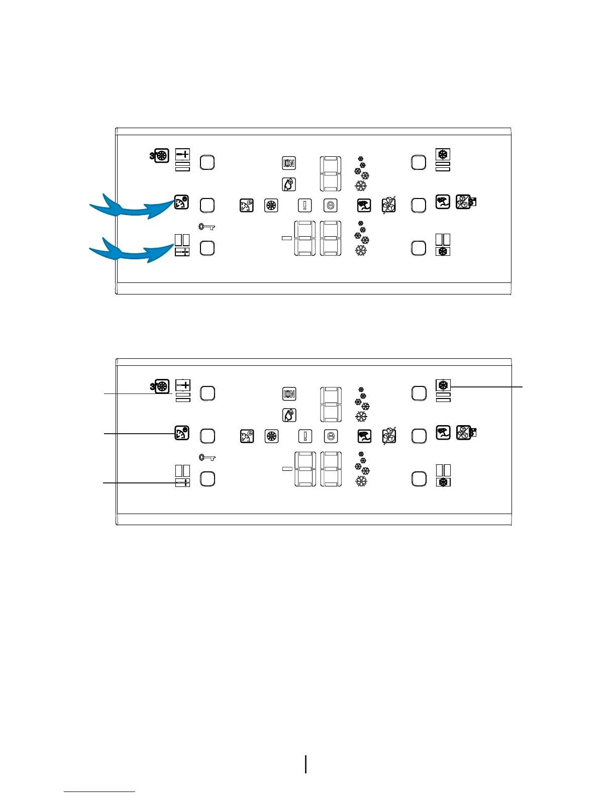 Snabbkylning (3) och Temperaturinställningsknapp för frysfack (4) samtidigt.