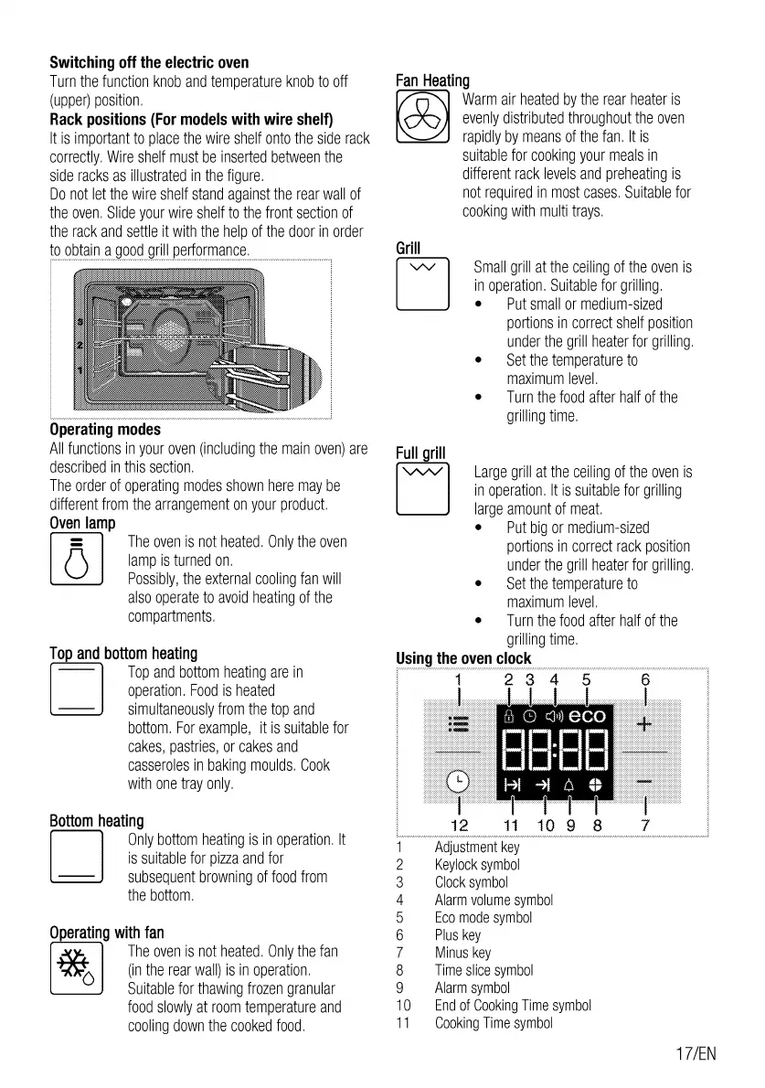 Blomberg OTN9302X - Oven Shutdown and Rack Positioning; Oven Operating and Heating Modes; Grilling Functions; Using the Oven Clock and Timer