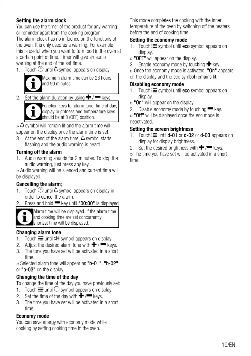 Blomberg OTN9302X - Setting the Alarm Clock; Turning off the Alarm; Cancelling the Alarm; Changing Alarm Tone